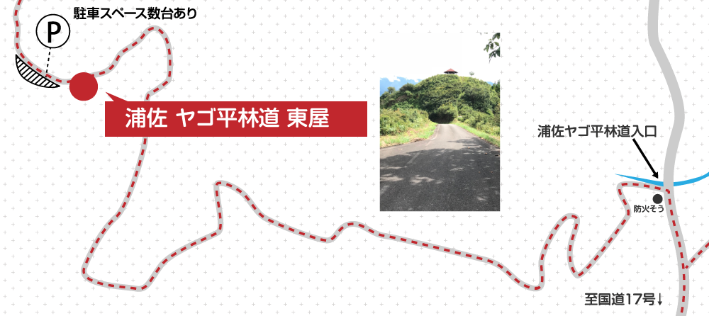 浦佐上山城址近く、六角形の屋根が目印「東屋」がハントに最適です。
